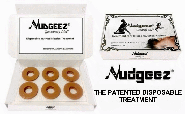 NUDGEEZ® is a unique non-invasive product developed by Genuinely Lite for correcting flat and inverted nipples. Our company's founder and product developer was born with condition. So, we understand the challenges and emotions often associated with inverted nipples. Our non-surgical treatment is based on an innovative patented method that does not rely on the traditional use of pumps, syringes, suction or vacuum. We offer a user-friendly disposable solution for correcting flat and inverted nipples, eliminating the need for maintenance or time consuming steps. Our method is as simple as, "PEEL, CENTER & APPLY". Each NUDGEEZ® package includes 30 individual self-adhesive units which can be worn discreetly beneath clothing and will remain securely in place, even while exercising or sleeping. Only medical-grade non-latex materials are used in the manufacturing of this product.